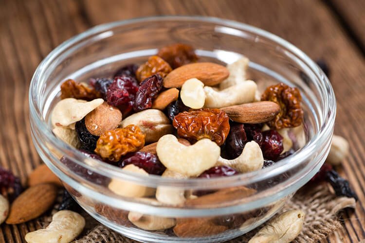 Trail mix is popular among hikers and adventurers because it provides quick energy and much-needed nutrients. Many trail mix varieties exist, but they usually consist of mixed nuts and dried fruit. Dried fruit digests quickly and its sugar is broken down for fast energy. Nuts take longer to digest, which means your stomach won’t begin rumbling for a while. Nuts and fruits are rich in vitamins, minerals, and antioxidants. Keep your nutrient stores high to fight off cravings and binges.