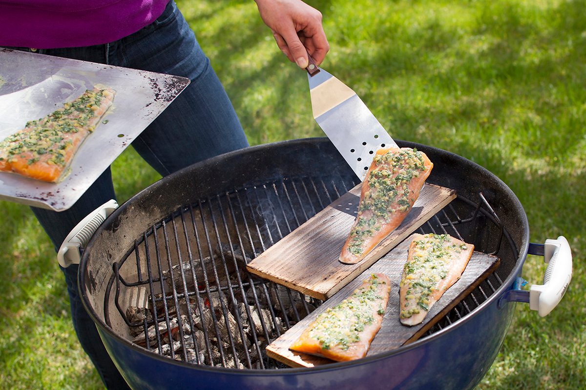 Test Kitchen tip: Resist the urge to flip the fish after you’ve set it on the plank. Close the lid, sit back and let it cook.