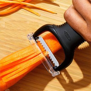 To shred carrots, just use this tiny tool like you would a regular vegetable peeler. As you pull it along the carrot, it’ll create fine, long strips.