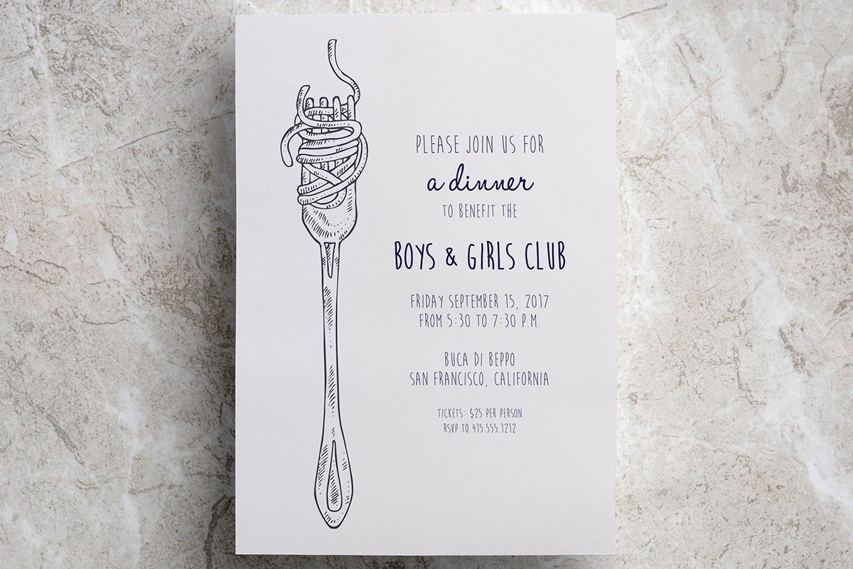 The easiest (ahem, cheapest) way to go for invites is to use a free service, like evite. Their penne-themed dinner party evite would be pasta-perfect.