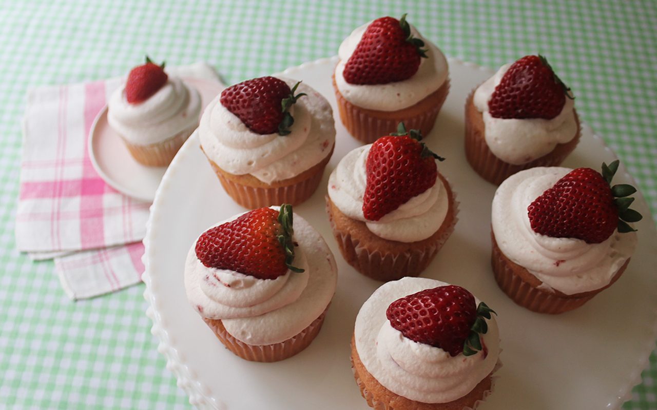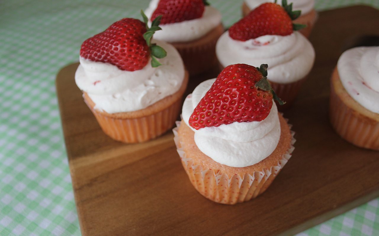 Celebrate warm weather and sunny days with strawberry cupcakes. Top it all off with a fresh strawberry whipped cream frosting. Who doesn't love berries and cream?