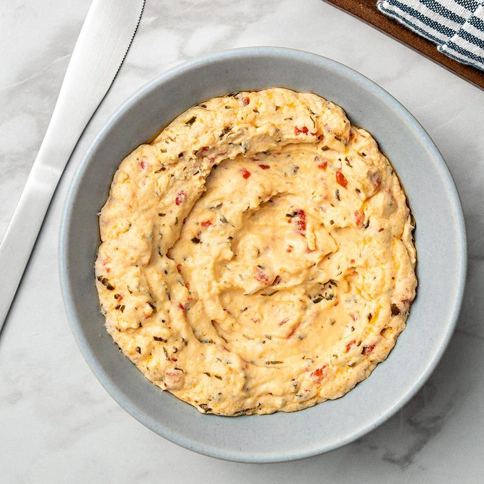 We’re big on appetizers, so this dip is a mashup of our favorite tastes, like cream cheese, feta, basil and sweet peppers. Serve with bread or chips. —Ashley Lecker, Green Bay, Wisconsin