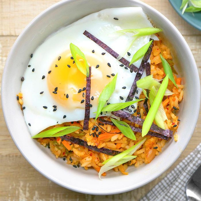 Forget ordinary fried rice! Kimchi fried rice is just as easy, but it packs a flavorful punch. This is a fantastic use for leftovers too. You can freeze the fried rice for up to three months. When cooking your defrosted rice, add a little extra soy sauce so it doesn't dry out. —Taste of Home Test Kitchen