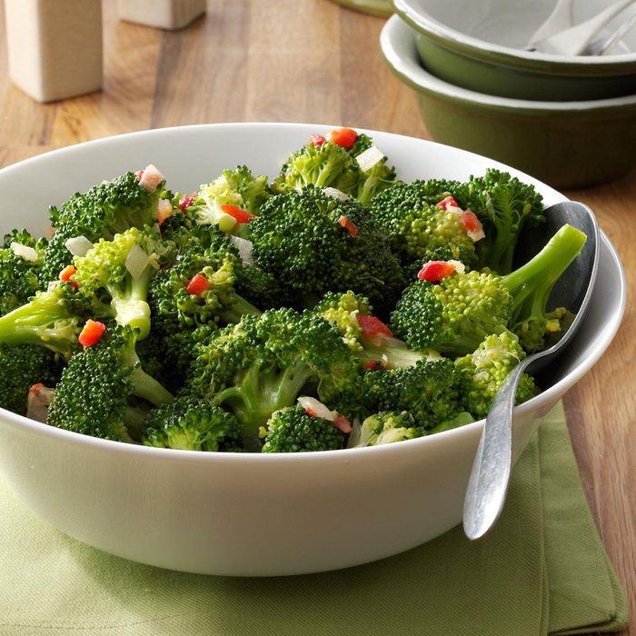 Add a hint of citrus to your vegetables with an attractive side dish. Ideal with most any entree, this time-saving specialty dresses up broccoli, pimientos and onions with a dash of lemon. —Tonya Farmer, Iowa City, Iowa