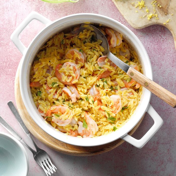 Spicy Shrimp Orzo with Lemon and Basil