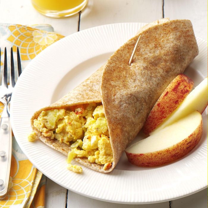 My daughter jokes that I am so predictable when it comes to dining out. I always order chicken souvlaki. So I thought, why not incorporate my favorite Greek dish into a breakfast wrap? It's healthy, tasty and easy to make.—Mary Jo Kempf, West Seneca, New York