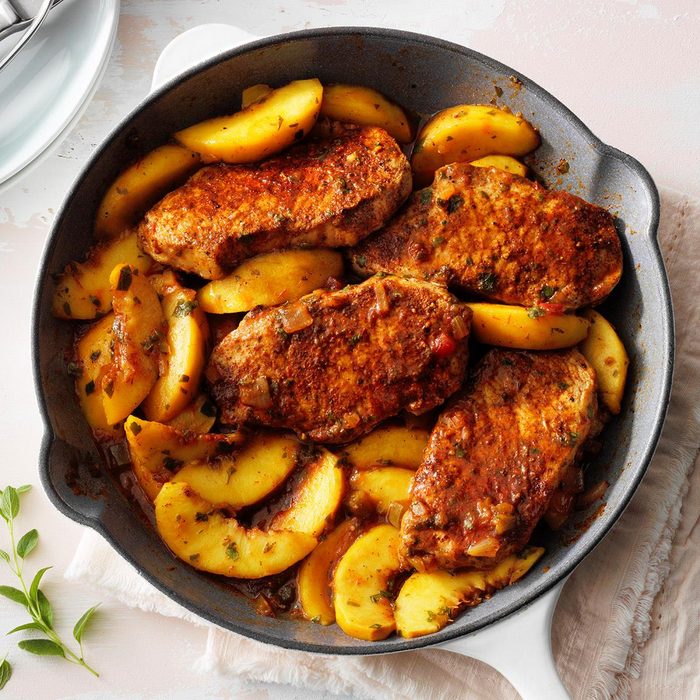 Think deconstructed Hawaiian pizza. The pork chops are served on a bed of pineapple and green pepper. It’s sweet, savory and a soon-to-be family favorite.