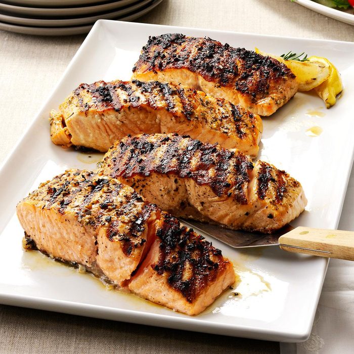 Many fish for salmon here on the shore of Lake Michigan, so I've developed quite a few recipes for it, including this one. I love it, and so do my friends and family. When it's out of season, I look for wild-caught fresh Alaskan salmon at the grocery store. —Diane Nemitz, Ludington, Michigan