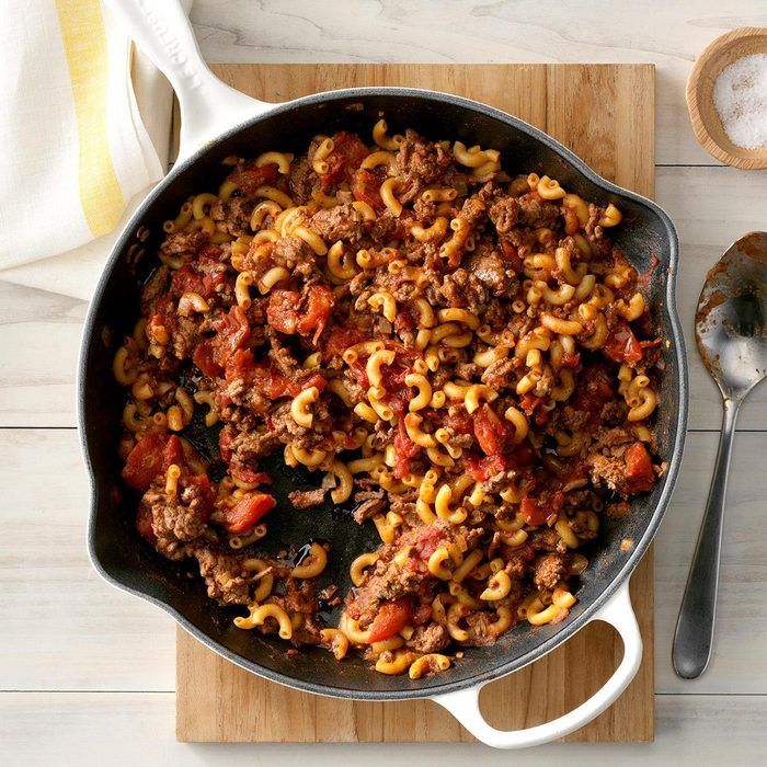 I get a head start on this family-pleasing dinner by assembling ready-to-grab pantry kits. I measure dry macaroni and the spice mixture into separate containers, storing them in a paper bag with canned tomatoes. —Darlene Brenden, Salem, Oregon