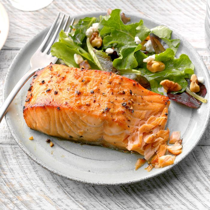 Compliments are a sure thing when I fix these fabulous salmon fillets. A tasty marinade pumps up the flavor and keeps them moist and tender. —Krista Frank, Rhododendron, Oregon