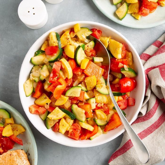 I’m trying to cut my risk for cardiac disease by changing the way I eat. This colorful sauteed zucchini and summer squash side dish is packed with as much nutrition as fresh-picked flavor! —Marlene Agnelly, Ocean Springs, Mississippi