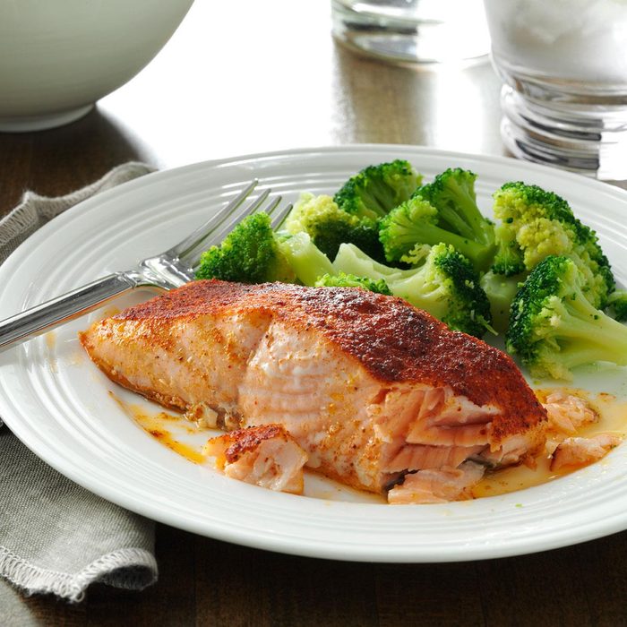 A sweet and tangy Asian-inspired sauce makes this salmon recipe pop. Best of all, it’s ready in just 20 minutes. Steamed broccoli makes a speedy side dish to match.