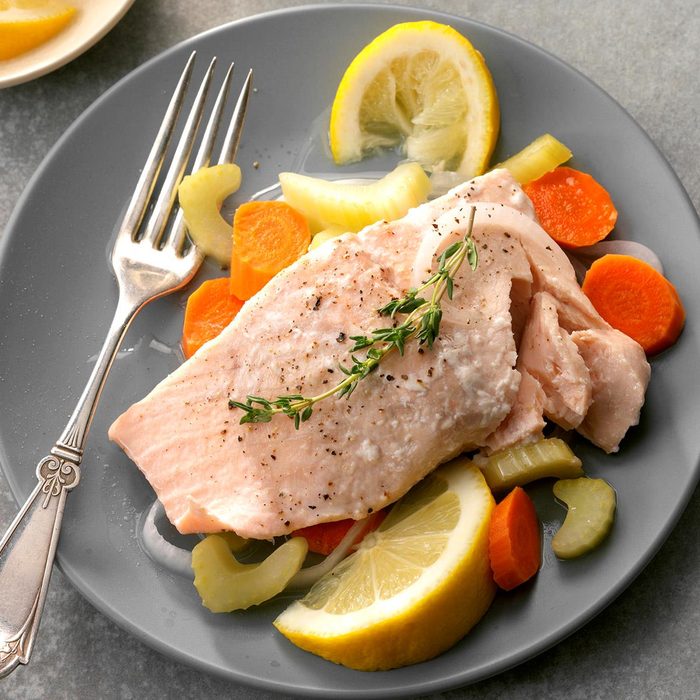 Topped with a creamy dill sauce and lightly spiked with horseradish, this top-rated salmon recipe sounds like a restaurant entree—but you can make it in a little over half an hour. This baked salmon cooks inside a foil packet, resulting in tender fish that won’t dry out (not to mention very easy clean-up). Looking for more? Learn how to make baked pesto salmon.