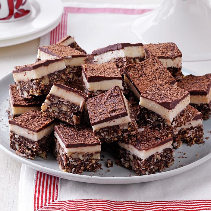 This layered bar hits all the sweet spots: It’s airy, creamy, crunchy and the perfect mix of cool mint and rich chocolate. It has a vintage dessert appeal that no one in our family can resist. —Marilyn Blankschien, Clintonville, Wisconsin
