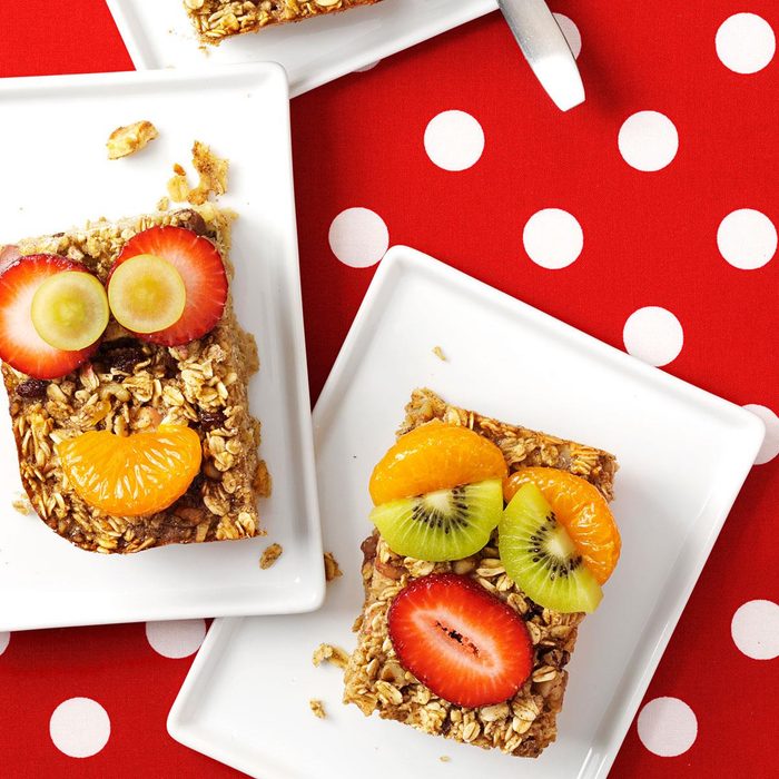 Baked oatmeal is a popular breakfast in my house. I make it often for my husband and seven children because it's budget friendly and versatile. I like to add a variety of dried fruits or nuts to mix it up. —Christina Smeal, Fairmont, West Virginia