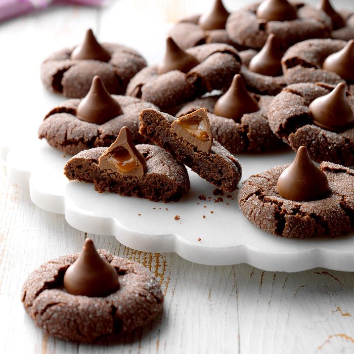 I make this cookie every Christmas with my family. It’s a fun twist on a classic peanut butter blossom because of the cinnamon in the batter and the caramel kiss on top. We love the cinnamon-caramel combination, but you could switch out the kiss for a different festive flavor. —Kristen Heigl, Staten Island, New York