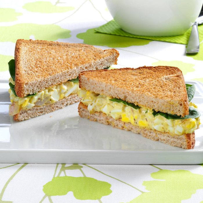Accessorizing the humble egg salad sandwich with olives, curry powder and celery seed really bumps up the flavor of lunch. —Anita Doyle, Dodgeville, Wisconsin