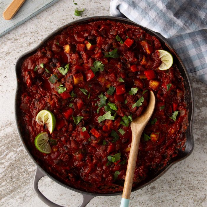Chili just might be the coziest food on the planet, and it’s as appropriate served in front of a football game as it is poured in a Thermos for a not-sad work lunch. Our simple recipe nixes the meat; try it as a Meatless Monday meal.
