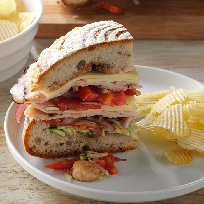 My friend Valerie is a gracious hostess. Of all the dishes she's shared over the years, this hero sandwich stands out. It’s easy and colorful, and the marinated veggies give it all kinds of oomph. —Kelley Boyce, Tulsa, Oklahoma
