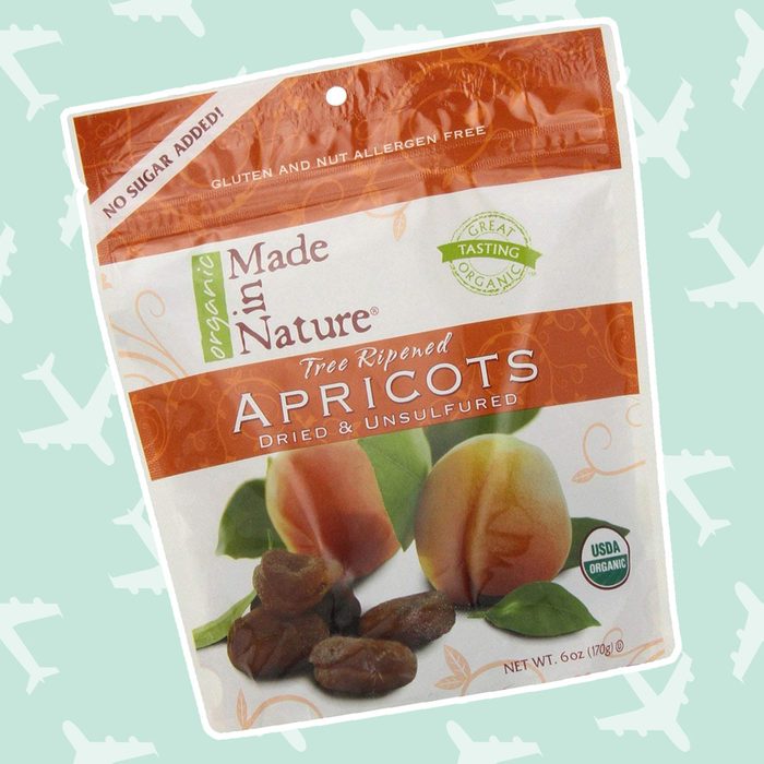 Small but mighty, a bag of apricots is a must have for travelers trying to eat right on a flight. Dried apricots are rich in fiber, and they contain even more potassium and iron than their fresh counterpart. Their high levels of Vitamin A also means you’ll be protecting your immune system, which is super important while traveling.