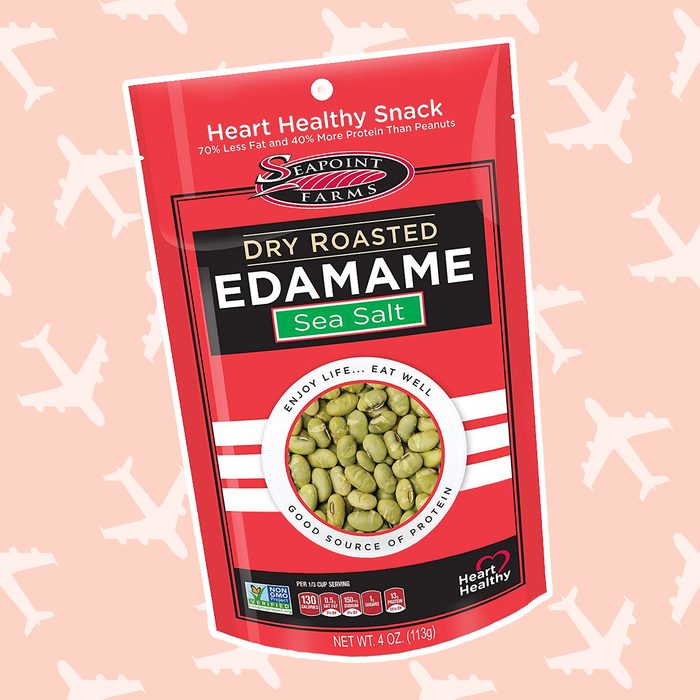 If you need a light-weight snack that doesn’t mess around, you need dry roasted edamame. With 14 grams of protein and 8 grams of fiber per serving, it’s really a wonder-food. Skip the peanuts—edamame has 70% less fat while serving up 40% more protein.