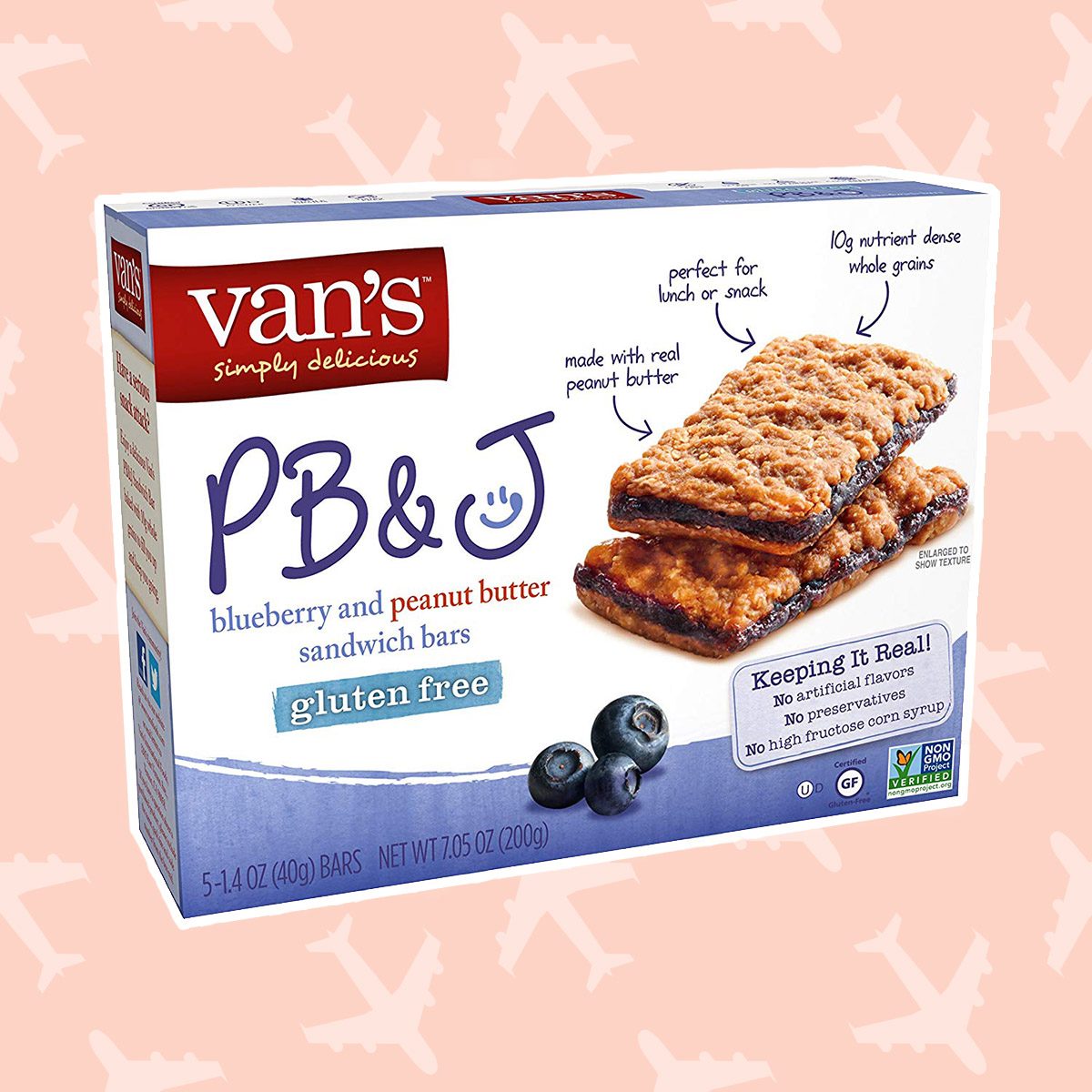 Skip the tupperware, and pack Van’s PB&J Sandwich bars instead. Made with real peanut butter and blueberries, these snack bars taste as good as the original, and they’re totally gluten free. Each bar packs 10 grams of whole grains. Just be sure to check there are no peanut allergies aboard your plane before unwrapping.
