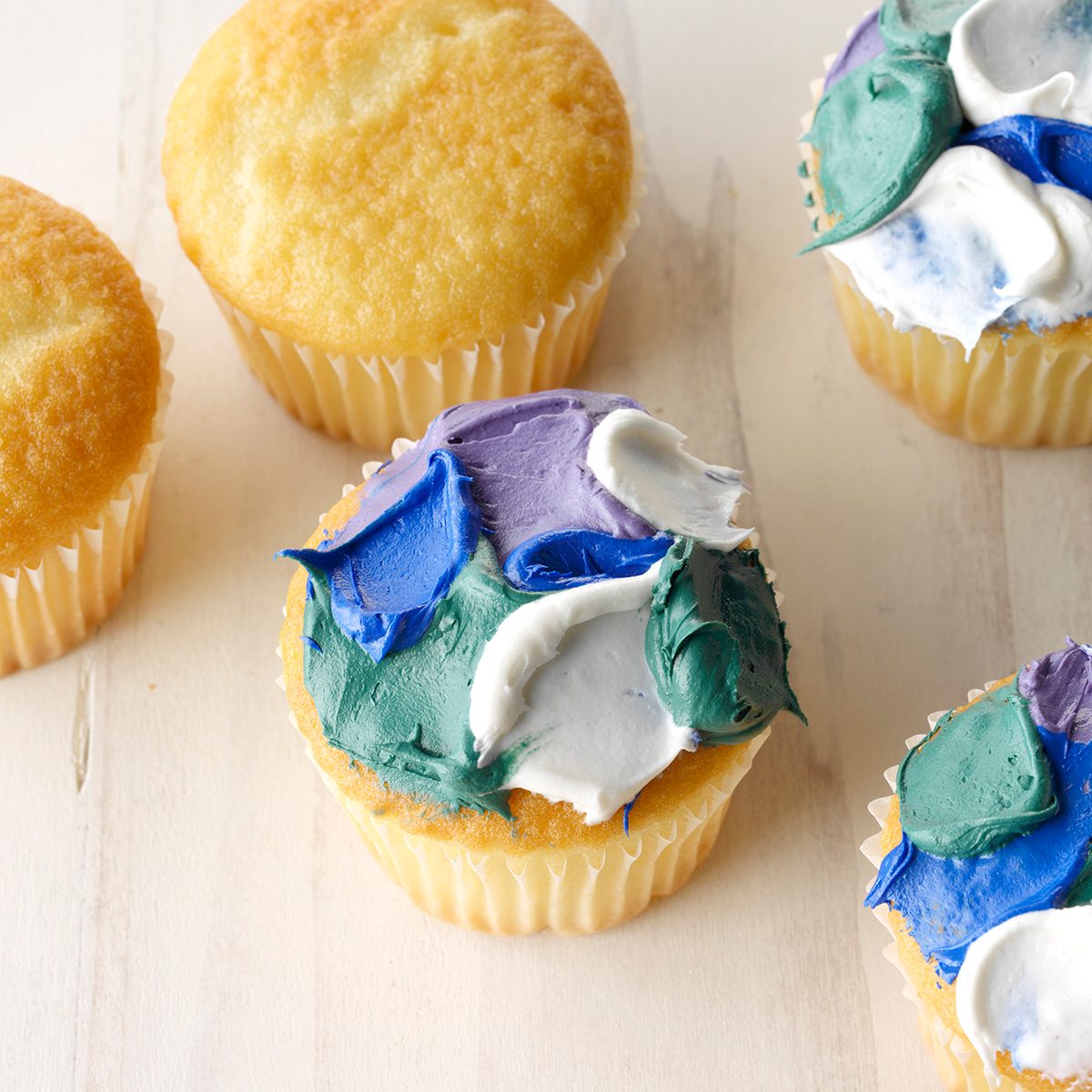 I’ve been making these colorful cupcakes with my mom since I was in high school. The cheery sweets are as fun to make as they are to eat. —Tammy Quinn, Lynden, Ontario