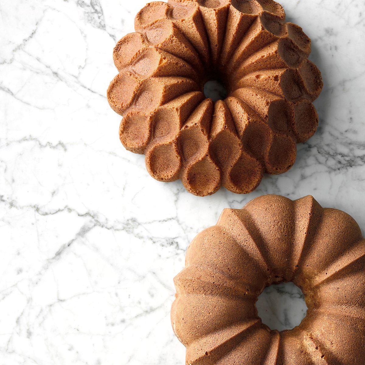 According to Catherine, denser cake batters do best in these pans. You can easily bake most pound cake recipes in your favorite Bundt pan. “But don’t use a light sponge or box cake mix in a Bundt pan,” she says. These lighter batters don’t have the heft or structural integrity needed to come out of these fancy pans cleanly.
