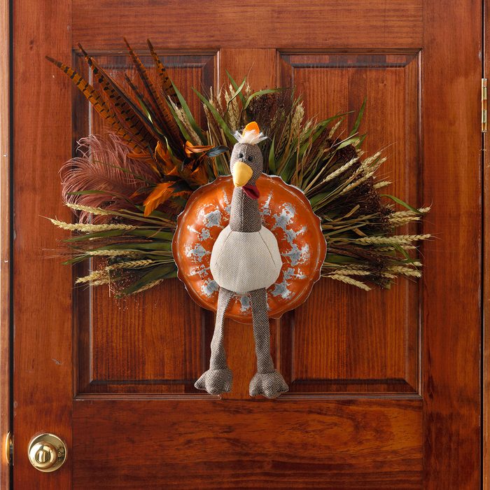 Poor Thanksgiving. The holiday oftentimes gets lost—at least from a decorating standpoint—between Halloween and Christmas. Add some harvest cheer to your home with this adorable turkey wreath. A painted bundt pan serves as his body, while fall foliage from the dried flower aisle fill out his plumage.