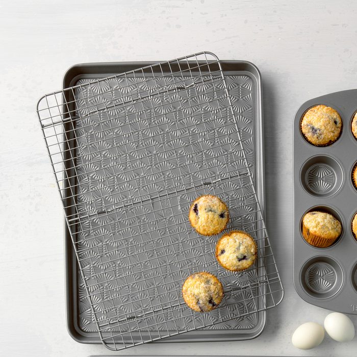 Why it made our list: This is Taste of Home’s very own line of bakeware! The raised feet of the cooling rack allows for air to circulate underneath baked goods, promoting an even cooling process while the narrow wire grid keeps smaller foods from slipping through.