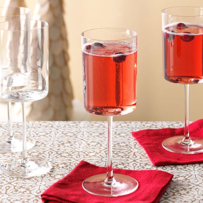 Wine-infused berries make a lovely addition to this special occasion drink that works just as well at the holidays as it does in the spring, given its festive gold and red colors.