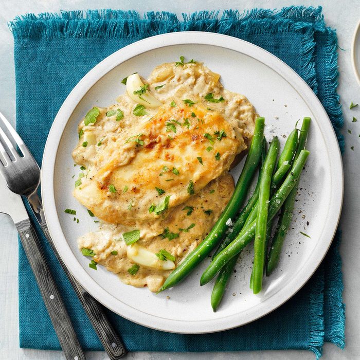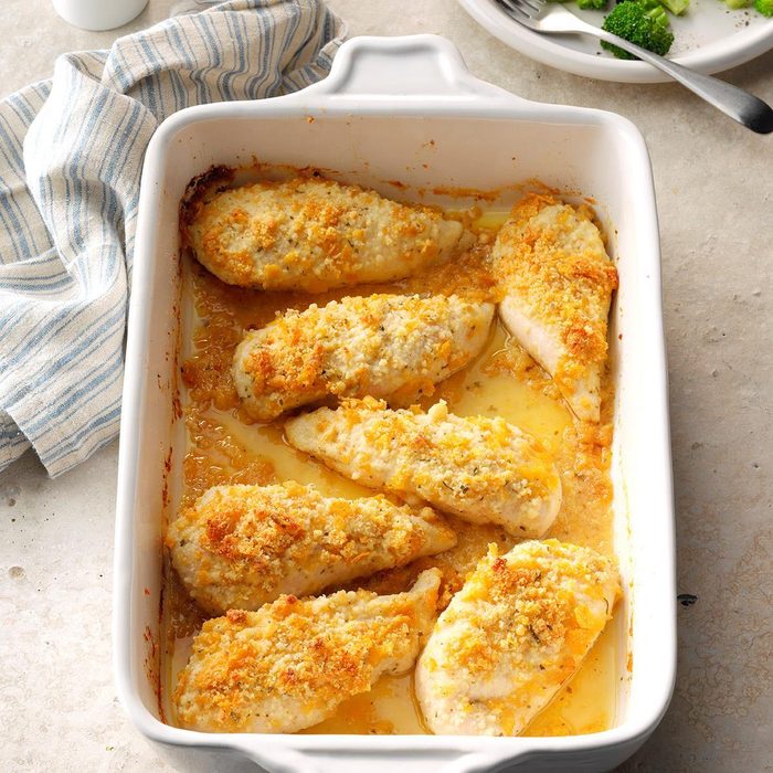 These baked chicken breasts are both flavorful and moist. From prep to table is 45 minutes, making this a perfect weeknight dinner dish. —Taste of Home Test Kitchen