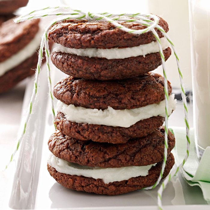From the Recipe Creator: A minty filling sandwiched between rich chocolate cookies—what’s not to love? —Gaylene Anderson, Sandy, Utah