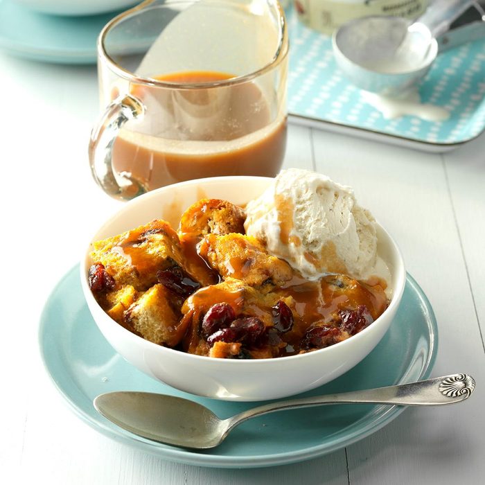 Savor your favorite fall flavors with this scrumptious bread pudding, served warm with a sweet vanilla sauce. Yum! —Judith Bucciarelli, Newburgh, New York
