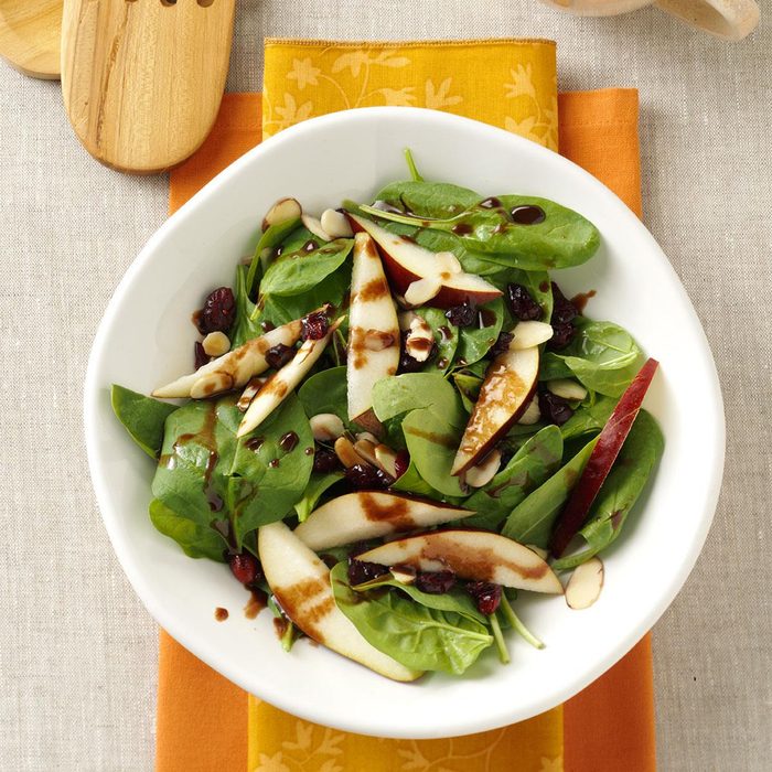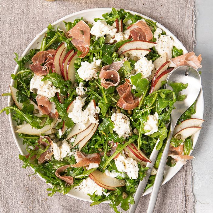 Seasonal produce items like cranberries, pears, citrus, winter squash and Brussels sprouts add varied textures, flavors and gorgeous colors to holiday salads. Try mixing warm cooked vegetables, like butternut squash or parsnips, with raw shaved Brussels sprouts or fennel for layers of complexity in every bite. Add fresh or dried fruit like oranges and pomegranate seeds for a sweet edge to offset the deep flavor of root vegetables or bitter greens. Mixing in fruits, vegetables and cheeses in shades of red, green and white instantly gives salads a holly-jolly vibe.