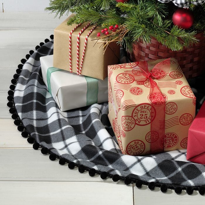 For an easy touch of glitz with no sewing involved, wrap a sparkly, colorful garland around the base of your tree like reader Andrea Holodnick. Here’s what to do with your real Christmas tree after the holidays.