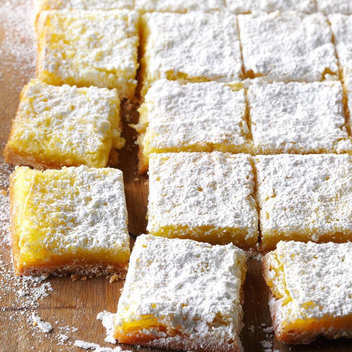 These lemony and chewy bars make a refreshing addition to the holiday cookie tray. Try lime juice and zest for a zingy twist. —Nancy Zimmerman, Cape May Court House, New Jersey