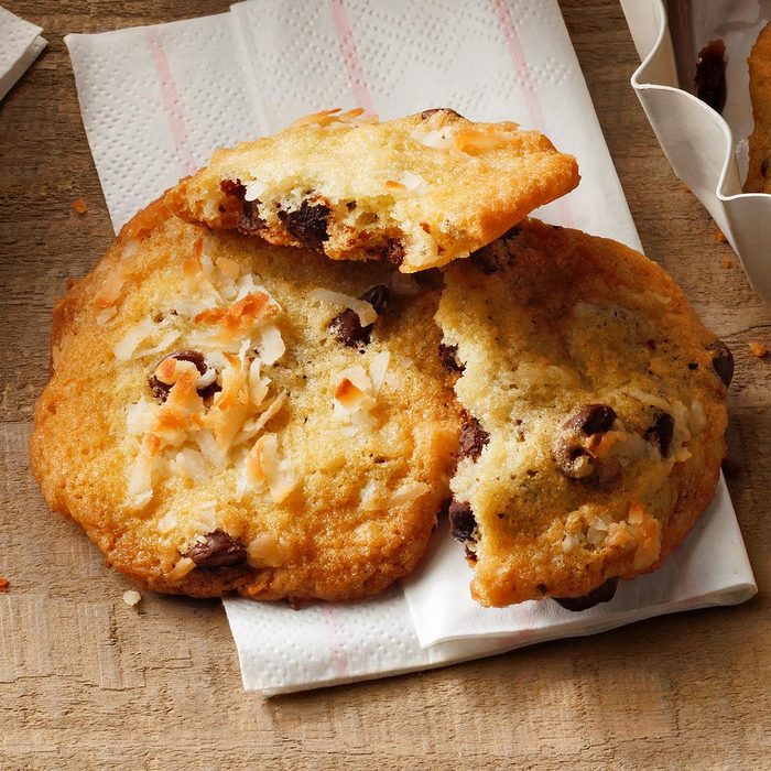 These coconut chocolate chip cookies are a delicious twist on the traditional treat. My whole family agrees this recipe is a winner. —Laura Bankard, Manchester, Maryland