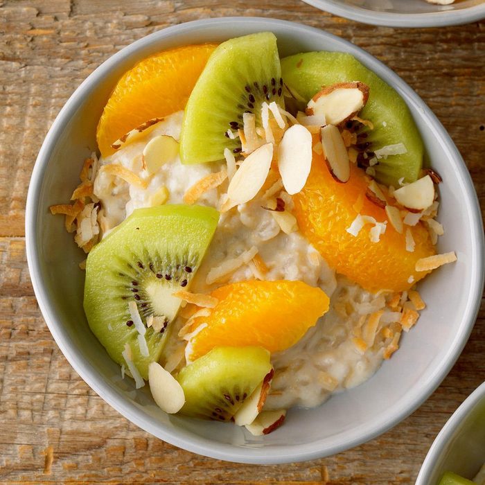 When my daughter’s friends come over for lunch, she treats them to her tropical parfaits made with brown rice and coconut milk. They’re fresh, creamy and comforting. —Suzanne Clark, Phoenix, Arizona