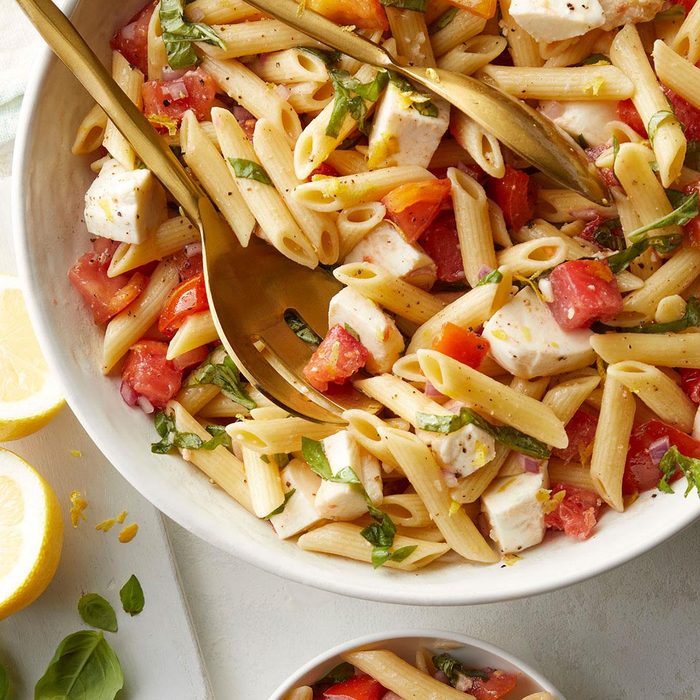 This easy pasta salad is always a favorite, especially when summer tomatoes are at their peak. It comes together quickly, but if you can make it ahead of time, the flavors seem to get better after it’s chilled for a few hours. —Recipe contributor Debby Harden, Lansing, Michigan
