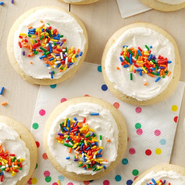 This thick and cakelike sugar cookie is similar to those sold at bakeries. My children often request these for their birthdays and are always happy to help decorate them. —Heather Biedler, Martinsburg, West Virginia