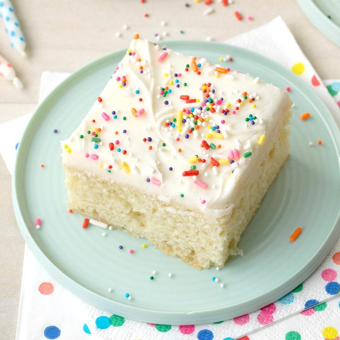 Desserts with sprinkles are a must for birthdays! This treat from Christina Tosi’s All About Cake is speckled with plenty of rainbow jimmies and that classic confetti cake flavor I just love. —Lisa Kaminski, Taste of Home Editor