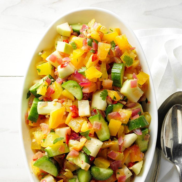 This chilled, refreshing salad is wonderful on hot days. It has a nice crunch and a delicious balance of sweet and spicy flavors. —Kristina Segarra, Yonkers, New York