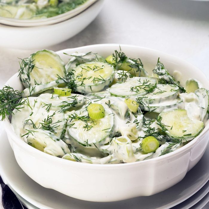 Here’s a fantastic way to use cucumbers. You’ll love the creamy and crunchy texture and super fresh flavors. —Charlene Skjerven, Hoolpe, North Dakota