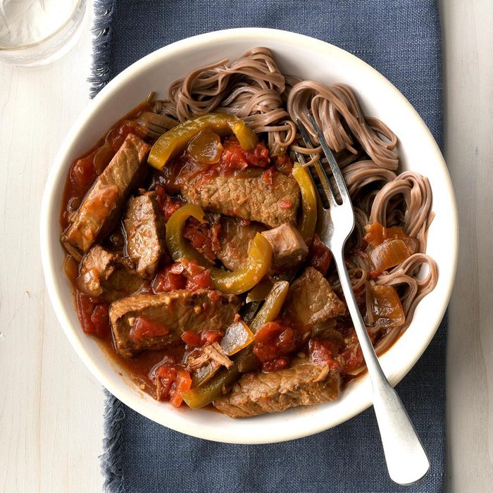 After a long day working in our greenhouse raising bedding plants, I enjoy coming in to this hearty slow-cooker pepper steak for supper. It's one of my favorite meals. — Sue Gronholz, Beaver Dam, Wisconsin