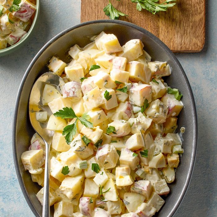 This potato salad recipe proves vegan recipes aren’t just for plant-based eaters! The dressing is made with avocado, vegan mayo, herbs and spices, giving it a hearty flavor and creamy consistency.