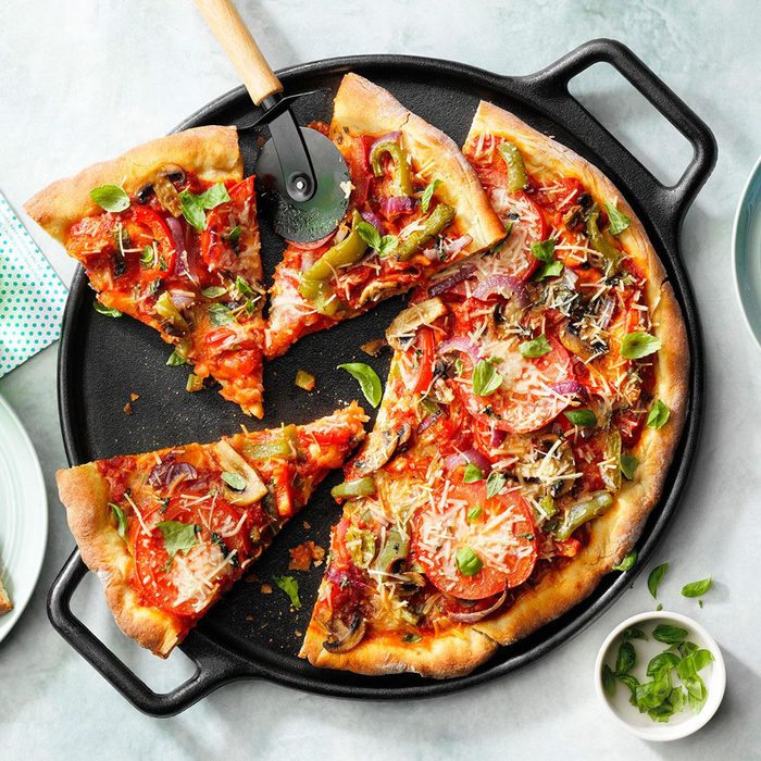 Cooking pizza on cast iron is the best way to mimic the pizza you’d get from an outdoor pizza oven: A crust that’s crispy on the outside and chewy on the inside with a pool of cheese in the middle. Here’s how to clean your cast-iron skillet once the pizza is done.