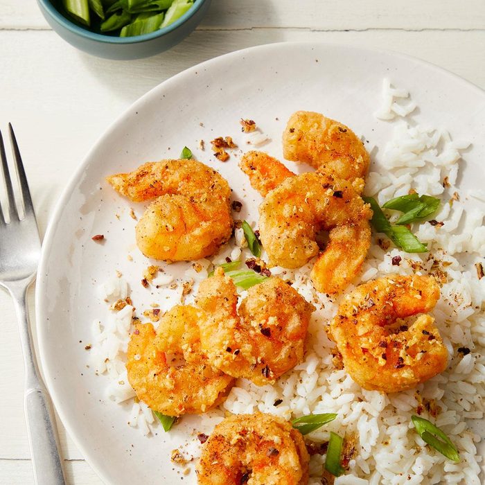 This recipe for Chinese salt and pepper shrimp uses less oil than takeout and still achieves that hallmark crispy shell.