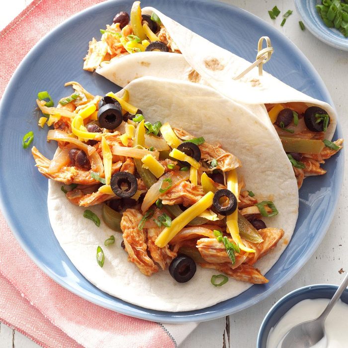 When I don’t have much time to cook supper, slow-cooker chicken fajitas are a flavorful way to keep my family full and satisfied. If you aren’t cooking for young tastes, try spicing things up with medium or hot picante sauce. —Michele Furry, Plains, Montana