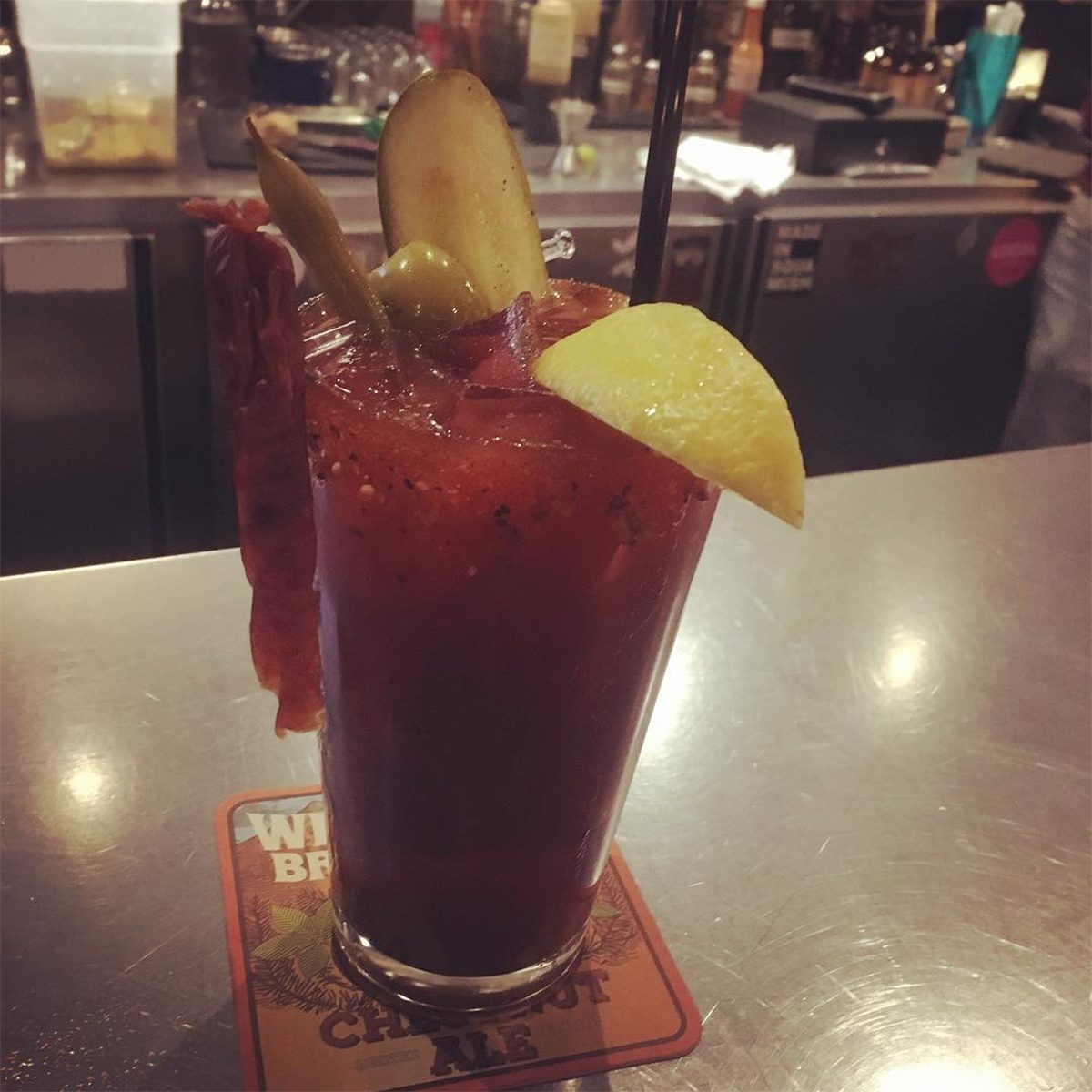 Adding in beef stock, hot sauce and horseradish to the classic Bloody Mary, this cocktail uses smoked salmon vodka straight from the Alaska Distillery to serve as the drink’s base flavor. Interesting and spicy!